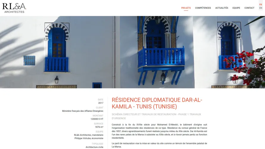 Para esta firma de arquitectos, desarrollo de la galería de los proyectos con las competencias asociadas. Diseño con David López (https://www.troisquatre.fr). Mantenimiento del sitio durante 4 años y migración de drupal 7 a 8, 9 y 10.