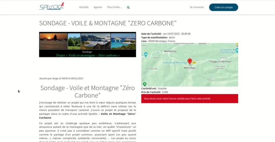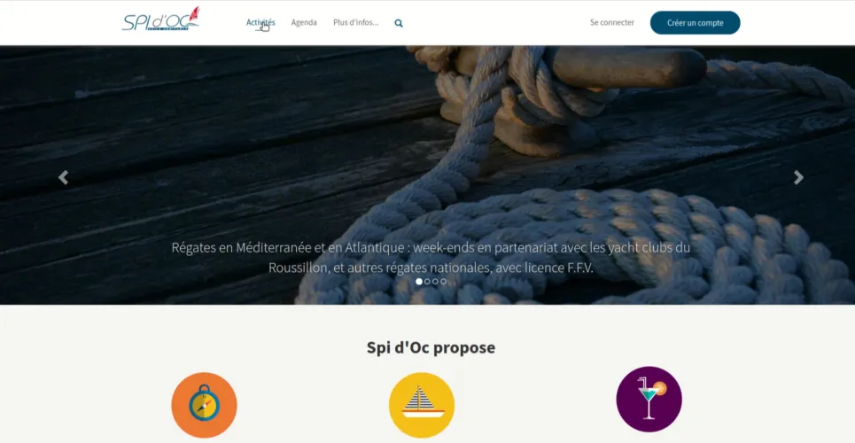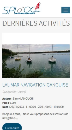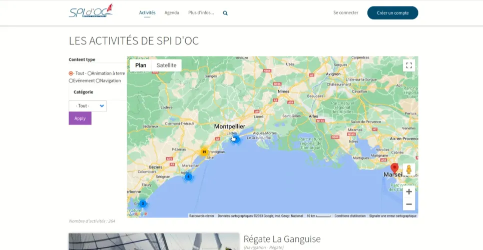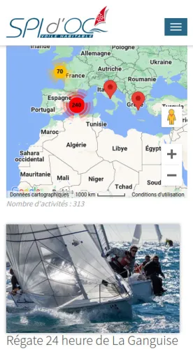 Para este asociación, creación de un mapa interactivo para compartir fotos, eventos, regatas... Todo se puede a través de Google map o seguir en el calendario.
